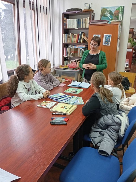 Ученици, чланови додатне наставе из српског језика, су са учитељицом Војинком Радисављевић посетили градску библиотеку и у сарадњи са библиотекарем Невеном Нешовић реализовали радионицу.