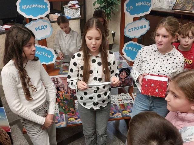 Чланови новинарске секције, у сарадњи са учитељицом Невеном Лончаревић и наставницом српског језика и књижевности Моником Ружић, штанд су обогатили бомбонама, листићима и натписима на којима су биле исписане речи при чијем се изговору и писању често греши.