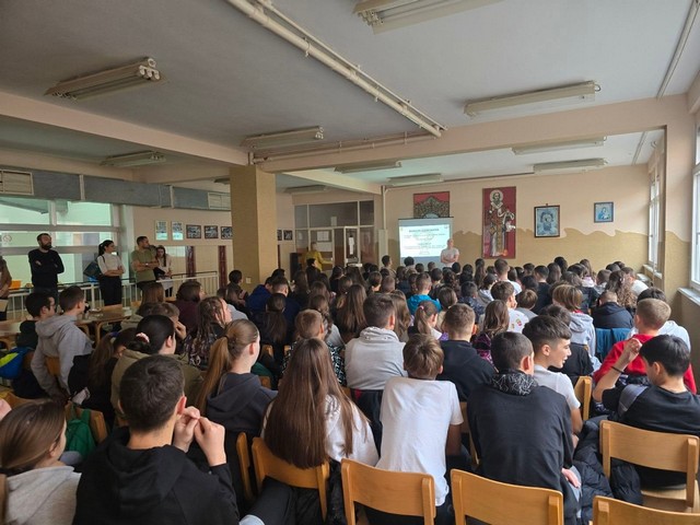Овој едукативној активности присуствовали су ученици од шестог до осмог разреда, који су у школској трпезарији имали прилику да чују важне информације, поставе питања и добију корисне савете о ризицима и последицама различитих облика зависности.
