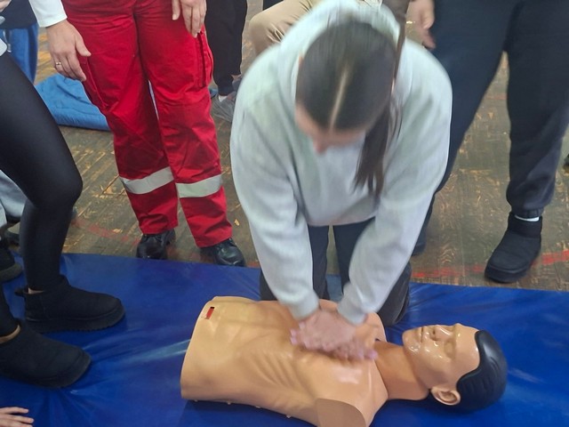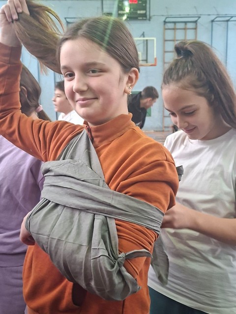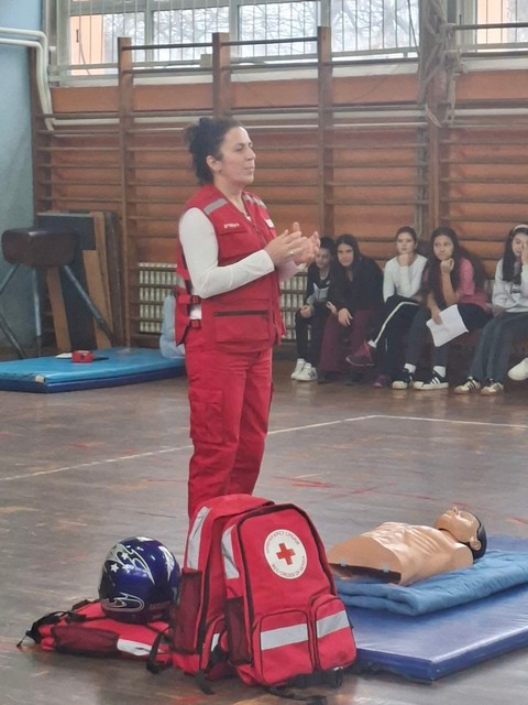 Под стручним вођством Весне Драмлић, председника Црвеног крста општине Лучани и предавача прве помоћи, ученици 6., 7. и 8. разреда учили су и вежбали како да се снађу у ситуацији када морају да помогну особи која је изгубила свест, крвари, има прелом, опекотине, епилептични напад или тровање. Ученици су имали прилику да вежбају једни на другима и разјасне евентуалне недоумице.