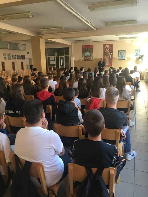 Предавање је реализовано за ученике седмог и осмог разреда, а циљ предавања је био да се ученици упознају са овим обликом зависности и ризицима по физичко и психичко здравље младих људи. Аутор књиге „Кладионица је моја прошлост”, Бранислав Јемуовић је изнео ученицима своје седмогодишње искуство у борби са једном од најтежих зависности садашњице, коцкањем. Нагласио је да је са разлогом Светска здравствена организација ставила на листу са осталим болестима зависности (наркоманија, алкохолизам, пушење), јер се веома тешко лечи. Пут до излечења је дугачак, али није немогућ, потребна је константна психолошка подршка, посебно најближих чланова, тј. породице.