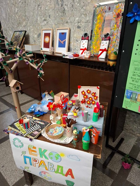 Изложени предмети, односно „еко-рукотворине”, представљају резултат тимског рада ученика, наставника, родитеља и помоћног особља. За њихову израду коришћени су рециклажни материјали – стари и већ употребљавани предмети којима смо дали нову намену.