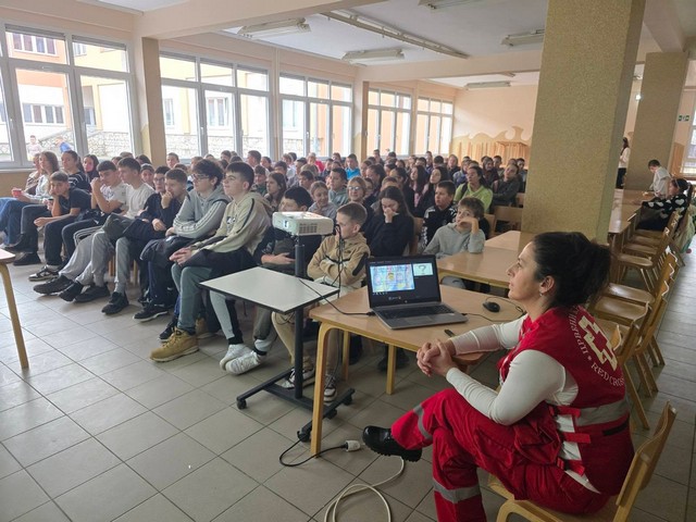 Овој едукативној активности присуствовали су ученици од шестог до осмог разреда, који су у школској трпезарији имали прилику да чују важне информације, поставе питања и добију корисне савете о ризицима и последицама различитих облика зависности.
